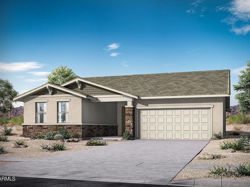 Brand new home, ready for move-in now in Litchfield Park area. This home comes standard with 3 bedrooms and 2 bathrooms, with a flex room, a covered back patio and a roomy 3-car tandem garage. This home has a large Island with beautiful quartz countertops including island and rich Espresso cabinets overlooking the dining room and great room! The owner's suite offers a nice walk-in shower and dual vanity with walk in closet. Enjoy your covered patio and spacious backyard for your future dream space! Home warranty included. Convenient location with close access to I-10 and Loop 303. Ask about special financing incentives with preferred lender.