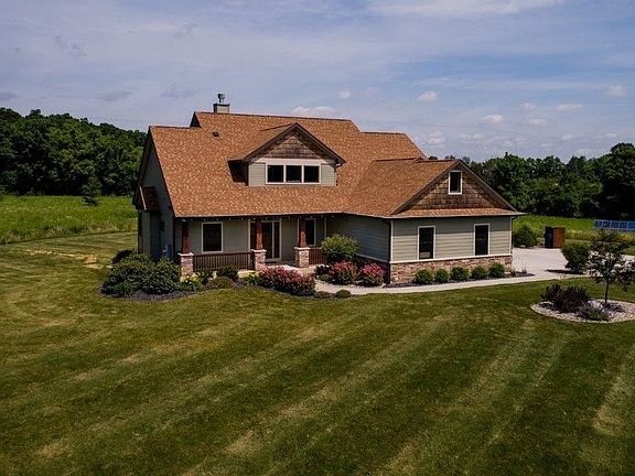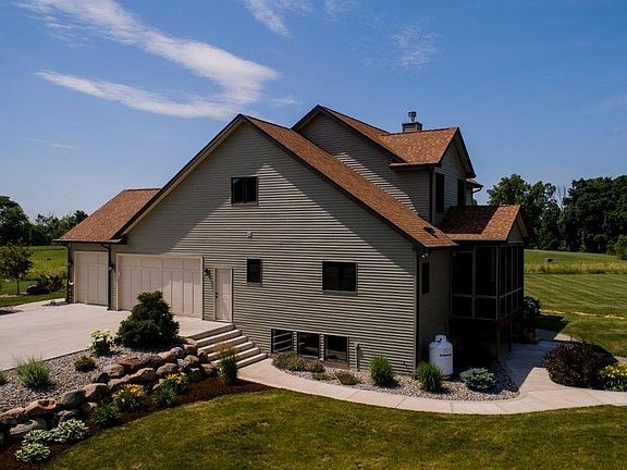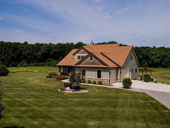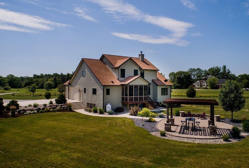 Great views of your own property encompassing prairie grass, mature woods and wildlife on 7.37 gently rolling acres in northern Allen county. Approximately 4.2 of the 7 acres is covered with beautiful prairie grass by Heartland Restoration Services who implemented a mix called Midwestern Diverse Tall Grass Mesic Prairie. There are approximately 1.5 acres of perimeter woods, along the back and side, framing and protecting the fabulous views. The 1.7 remaining acres hosts the home, the hardscape features and the lawn. The 3,824 Sq-Ft home was built by Timberlin Homes in 2015 and has 4 bedrooms, 3.5 baths and a generously sized (35x25) 3-Car Garage. The property is part of a small 4 lot development accessed from a common drive. The main floor has tall ceilings, wood floors, wood Mission style doors. Open concept kitchen, dining, living room. Kitchen has a professional 6-burner cooktop, open upper shelves, an island with a prep-sink, walk-in pantry. The dining area has wood ceiling detail and access to the screened patio. The foyer entrance is spacious and bright. The living room has a wood burning fireplace (propane ready) with a rock front and a rustic wood mantle. The master bedroom is on the main floor, it has a trey ceiling and a walk-in closet. The master bath has a vanity with a granite top and a double sink, a garden tub, a large tile shower. The daylight basement has a large recreation room, the 4th bedroom, a full bath and a wet bar. Second floor has a loft with a sitting area and built-in shelving, 2 bedrooms with large walk-in closets, a full bath and a walk-in attic. Additional features include; solar panels, closed loop geothermal heating and cooling, 2 water heaters, 2 sumps with a battery backup, water softener, gutter guards, Master Spa twilight hot tub. In addition to the lot purchase, the build cost and the cost of the well and septic, the owners have invested $80K in the landscape, patio and driveway, $7K in the prairie restoration, $40K in the solar
