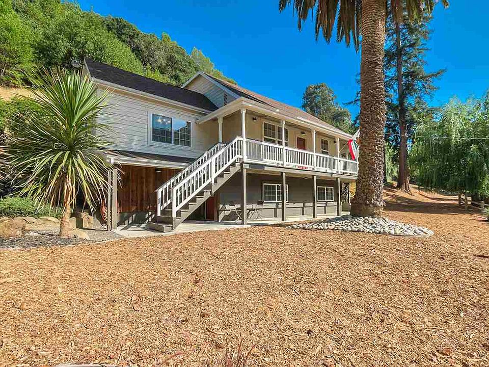 Priced to Sell!! Beautiful Canyon Home QUIET, PEACEFUL LOCATION NEXT TO PARK LAND CLOSE TO TOWN- 1.41 miles from Crow/Cull Canyon Rd Intersection GREAT PROPERTY FOR CONTRACTOR, SMALL BUSINESS OWNER- PARK VEHICLES, EQUIPMENT STORE THINGS ON SITE SAVE MONEY! BONUS-House is Updated throughout, nice sharp condition Upper level is a 3 bedroom, 2 baths. Remodeled Kitchen, Master suite. Separate entrance to Studio Apartment. Rent potential! Nice living room, kitchen, bathroom and sleeping space in the studio. Great location for multi-generational families, city farmer, small business owner needing vehicle parking spaces & nature lover. Part of property has panoramic view of Bay, Bay Area sites. Approx 1760 sq ft Barn/Garage with workshop, has many potential uses- cars, toys or livestock, storage. Room around the barn for parking and storage. Nicely landscaped, affordable sharp 4.11 acres ranchette property located near BART, BAY AREA JOB CENTERS. Sharp Condition LOW PRICE ACT NOW!
