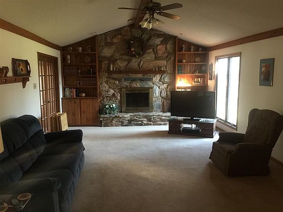 Fantastic setting down this rolling dead-end road with woods and ponds and lots of nature. This 4.4 acres is rolling and simply beautiful. The very large family room on the main level (15' x 28') has floor to ceiling stone fireplace and cathedral ceilings. Attached is a four season room which also attaches to the MBR. Kitchen with island, hickory cabinets, formal dining room, 15' x 57' family room in basement with new carpet, new high eff. gas furnace, 3 full and one 1/2 bath, main level master bedroom with full bath, 2 additional bedrooms on mail level and 1 bedroom in the lower level, great office or craft room with outside entrance, detached wood frame barn 24' x 30' with walk-up second level.