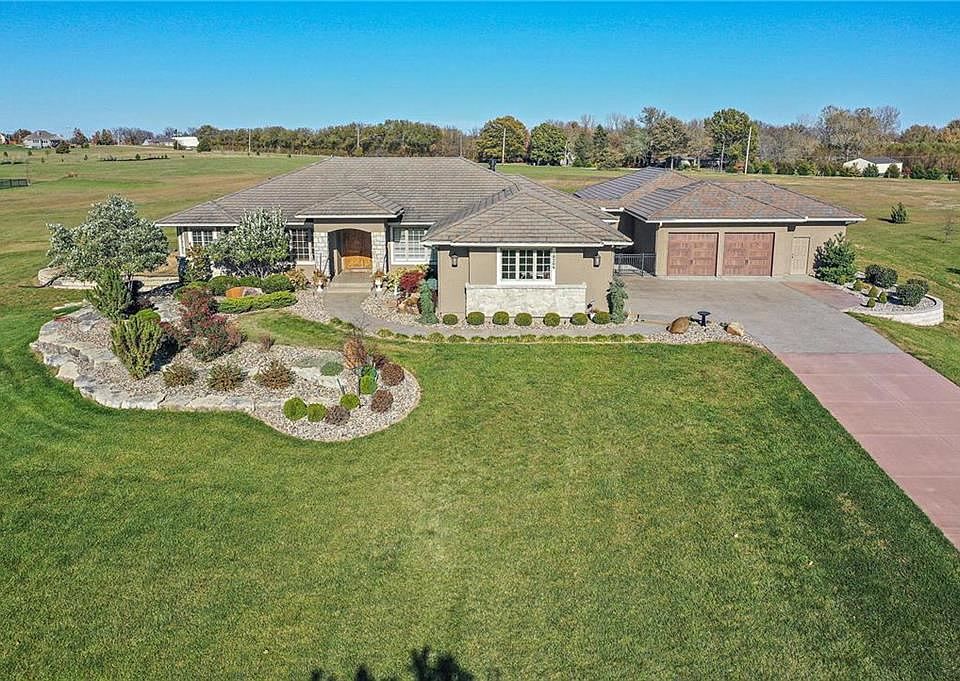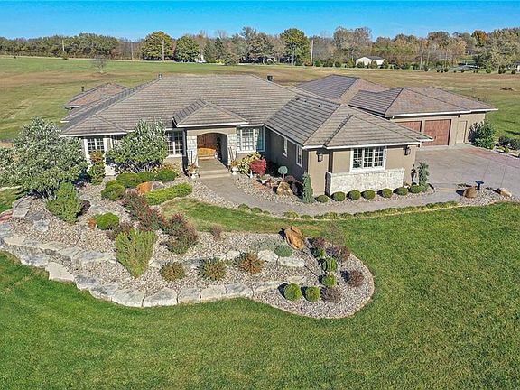 Your Private Oasis awaits! Sophisticated custom built estate home on 4.25 acres, 5 bedroom/5 bath/5 car garage. Open concept chef's kitchen, high end appliances, custom cabinets, granite counters & island. Two master suites on main level w/individual walkout access to pool/patio, his & her walk-in closets, luxurious spa like bathrooms, 2 laundry rooms on main level. Outdoor entertainment area featuring spacious cabana w/patio, saltwater pool, spa with waterfall, built-in grill & pizza oven, fireplace & bar.