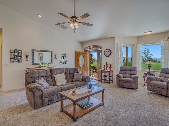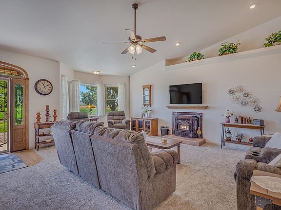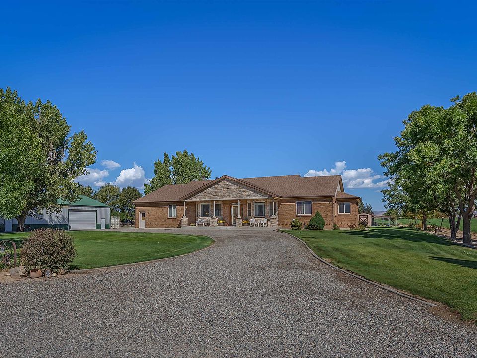 Immaculate 2,830 sqft custom ranch style home with beautiful views of the surroundings mountains. Offering 5 bedrooms including 2 master suites, 2 1/2 baths, 2 car attached garage plus a 60x100 three sided outbuilding for storing all of your farm equiptment and another 48x90 shop with garage. Shop has In floor heat, tankless hot water heater with a full size bathroom and shower. This property is situated on 52.98 irrigated acres of lush farm land and is subdivided into 4 parcels. Property comes with Class-1 acres of irrigation water and an under ground pressurized irrigation system with low maintance and well maintained head gate set up for all of your farming needs. A grandfathered in 2 1/2 inch farm tap that provides unlimited irrigation water to the yard and garden areas at no costs. Mature landscaping with a variety of fruit trees, fenced in and shaded dog run, large garden area and a 8x20 storage shed that can be easily converted into a chicken coop if desired. Freshly painted inside with new carpet throughout, kitchen has granite counter tops, stainless steel appliances, 2 pantries, with a built in curio cabinet. Spacious living room with vaulted ceilings and a pellet stove. Large laundry room with sink and a half bathroom, an air filtration system, 2 HVAC units for heating and cooling. Handicap accessible throughout as well. Farmer is currently farming the fields with alfalfa, hay and winter wheat. There is tremendous potential for multiple crop opportunities. Adjacent to this property boarders Highline Lake State Park where you can enjoy many amenities at your back door including, camping, boating, water sports, beach area, gatherings for picnics and BBQ’s with family and friends plus, a 3 1/2 mile walking/ biking trail. All four parcels must be sold together and farm equipment is sold separately.