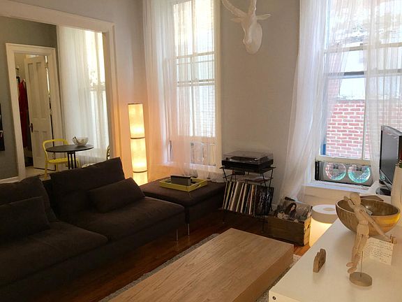 This beautiful Brownstone Building on 5th avenue is walking distance to both RPI and Sage. It is nestled in beautiful Downtown Troy on a tree lined street. Close to Nightlife. This One Bedroom apartment is on the First floor of this secure, quiet building. Freshly painted walls, refinished hardwood floors and large windows make this apartment bright and cheery. There is Complementary Wifi throughout the building and there is a common Coin-op Laundry room. The efficient kitchen has a gas stove and the bathroom has vintage black and white tile. The common hallways of this apartment building have been carpeted with a swanky black carpet, and the entrance foyer is simply stunning. Our current tenants are quiet, hardworking students or professionals