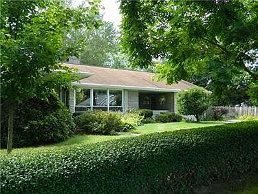 This solid, custom-built stone ranch is larger than it looks and is made for relaxing both inside and out.<P>The huge living room features the first of 4 fireplaces with a large stone wall and hearth, ceiling light with fan, and a large triple window for natural light. It adjoins the dining room also with ceiling light & fan and a sliding glass door to the covered patio.<P>The Eat-in-Kitchen includes a peninsula with cooktop and seating for 4, wall oven, dishwasher, refrigerator, the second fireplace, and access to the deck. It easily holds a large table and chairs.<P> The master bedroom features a walk-in closet, smaller closet, ceiling light with fan, an attached full bath, and the third fireplace(gas). There are 2 additional bedrooms on the main level both with windows, ceiling lights and fan, and generous closets. A fourth bedroom is in the lower level again with ceiling light and fan.<P> If you need extra storage, the Floored, Walk-up attic is accessed from the entry closet. The partially finished lower level with wet bar area and walkout to yard contains the fourth fireplace.<P> The fully fenced back yard offers covered patio, large multi-level deck, raised walkway to tiki hut playhouse/changing room, solar-heated above ground pool, hot tub, and plenty of grassy area.<P>There is a 1-car Attached and 2-car Detached garage with electric and storage above.<p>