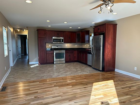 Freshly painted home with fully refinished flooring. Stainless steel appliances with granite counter tops. Main level washer and dryer in bathroom. Large patio perfect for gatherings. Centrally located to parks, restaurants, schools and more. Renter is responsible for utilities. No smoking allowed. Can have small dogs, and certain other small animals. Renter must take care of lawn maintenance and snow removal.