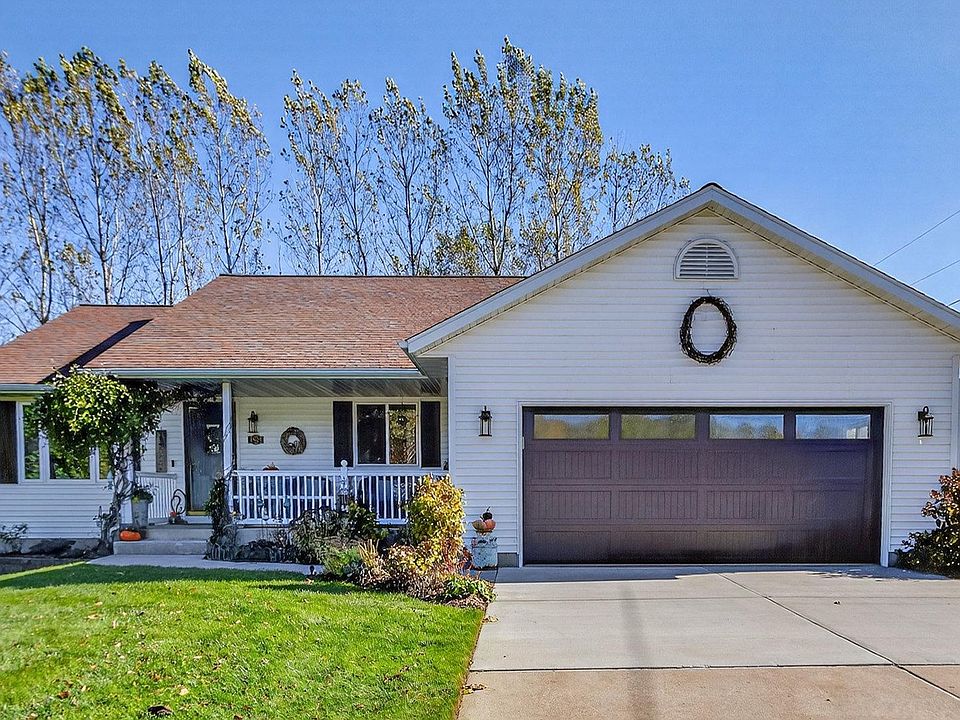 This immaculately well-kept ranch-style home offers exceptional quality and extensive updates throughout. Featuring three bedrooms on one level, an open-concept dining and living area, and convenient first-floor laundry, the layout is both functional and inviting. The home includes an attached heated two-car garage, a detached one-car garage, and a playhouse with electricity. Enjoy a completely fenced, private yard that is truly a gardener’s dream, complemented by recent repairs to the concrete, fencing, and deck. A large covered front porch and back deck provide ideal spaces to enjoy beautiful sunrises and sunsets. The current owner has completed significant remodeling, including an upgraded main level and a completely redone lower level finished in 2024. Major mechanical updates in 2024 include a new air conditioner, furnace, and water heater. Additional improvements include newer shingles within the last seven years, a new gutter system on the home, garage, and shed, and a new garage door and outdoor light fixtures installed in 2025. Conveniently located near major highways and schools, this home offers comfort, functionality, and peace of mind.