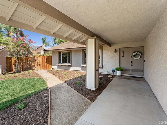 This house has had many updates to make it a great home! The primary suite is a permitted addition, creating enough space to be used as a junior ADU studio as it has a separate entrance, kitchenette, living area, two walk in closets and a spacious bathroom including vanity area and two separate sinks. Outside area off the primary suite (accessible by a French door) has space and utilities to add a spa. Nineteen solar panels (owned) installed in July 2023, resulted in a refund from SCE for the first year of use. Both bathrooms completely remodeled. Two covered patios (new in 2023) with sliding glass door access to both off the kitchen/family room and second off the living/dining room. Gated RV parking (approx. 50' x 14') with hookups on the side of the house (30 amp electric, water and sewer). Pool sized backyard. Laundry in separate, drywalled space in garage. Enjoy the beautiful sunset views from the newly landscaped front yard. Very low taxes further adds to the appeal of this lovely home. Great cul-de-sac location, close to 91 Freeway, schools, and Brentwood Park.