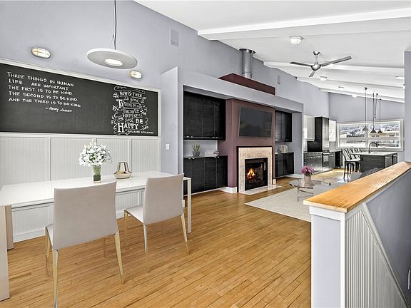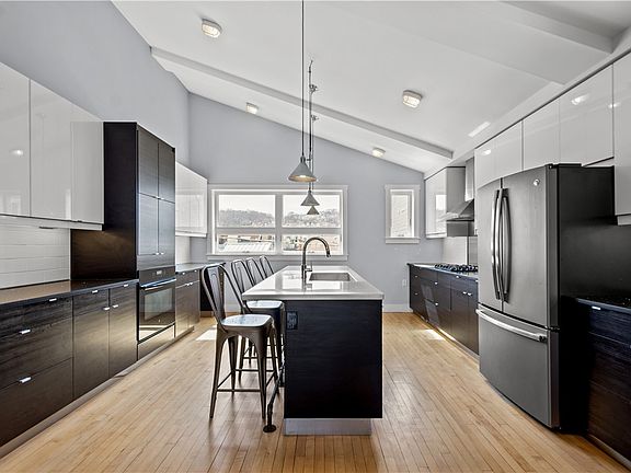 Amazing chance to own this custom-built home in the South Side with a 2 CAR GARAGE! The owners designed this contemporary home to reflect a modern yet minimalistic style on the interior & exterior with Galvalume industrial siding on the exterior. Oak steps great you as you walk inside, and natural lighting flood the maple HW floors on the 2nd + 3rd levels. The owner’s suite includes a walk-in closet, built-in headboard, dresser, and a full bath with a cultured marble sink, heated floors, and a tiled shower with a double soaking tub. The 2nd bed incl. a large closet + laundry. The 3rd floor is open & fabulous for entertaining. The kitchen has Quartz counters, SS appliances, center island with bar stool seating, SS counters, and sink, and chic pendant lighting. The lounging + entertainment space surrounds the kitchen. Cozy up by the fireplace or step out on the Terrace with gas grill to enjoy views of the City. Fiberglass windows throughout & a private courtyard outback.