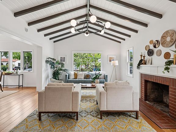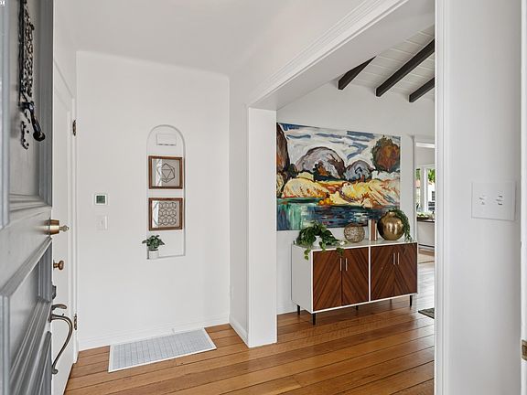 Rare Fernside Gem: 1930s Charm Meets Modern Elegance Tucked away in Alameda’s coveted Fernside neighborhood, this 1937 home blends vintage character with thoughtful updates. With 1,819 sq ft of stylish living space (per appraisal), it’s a rare find in this desirable area. The sunlit living room features vaulted ceilings with exposed beams, a West Elm light fixture, and a classic brick fireplace. Refinished original wood floors flow through the main and upper levels, adding timeless appeal. A formal dining room with modern chandelier connects to the updated kitchen via a vintage swing door with stained glass. The kitchen boasts freshly painted cabinets, new counters and hardware, stainless appliances, induction range oven and a Waterdrop filter. A cozy breakfast nook opens to the side yard—perfect for morning coffee. Upstairs: two bright bedrooms and a full bath with tiled stall shower. Downstairs: a third bedroom with laundry closet, second full bath, bonus room for an office, gym, or guest space, and newer vinyl plank flooring. Extras: detached garage, long driveway, lemon tree, fresh paint in and out, central air and heat, and newer roof (2018). Close to Edison Elementary, Nob Hill Shopping, parks, and shoreline trails.