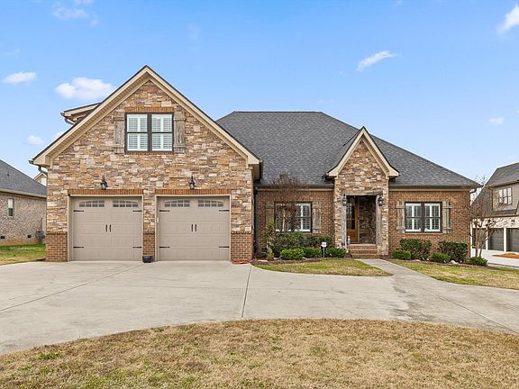 Welcome to 1821 Gray Rd, a beautifully crafted brick and stacked stone home offering quality construction, refined finishes, and a highly desirable layout with the primary suite on the main level. Impeccably maintained and built by Rostis, builder of the highly sought-after homes on nearby Rostis Lane, this property offers the rare benefit of a large backyard with no HOA dues. This thoughtfully designed 3-bedroom, 2.5-bath residence features hardwood floors, crown molding, and plantation shutters throughout. The spacious living area is centered around a striking stone fireplace, while the kitchen features custom cabinetry, granite countertops, stainless steel appliances, an electric cooktop, and a bright breakfast nook. The main-level primary suite includes a tray ceiling, generous sitting area, and a luxurious en suite bath with separate granite vanities, soaking tub, walk-in tile shower, and an expansive custom walk-in closet. Two additional main-level bedrooms share a well-appointed full bath. Upstairs, a large bonus room currently used as a media room offers excellent flexibility and can easily function as a fourth bedroom or additional living space. Additional highlights include a dedicated laundry room with cabinetry and granite counters, an exercise room, and a true two-car garage. The covered back porch overlooks a large, flat backyard with plenty of space for a pool or other outdoor recreational uses, making it ideal for entertaining or future enhancements, while exterior lighting accentuates the attractive brick and stone façade. Ideally located in the heart of East Brainerd near Hamilton Place Mall, excellent shopping and dining, and multiple convenient routes to the interstate, this home offers exceptional comfort, quality, and convenience in one of Chattanooga's most desirable areas. Schedule your private showing today before this home is sold.