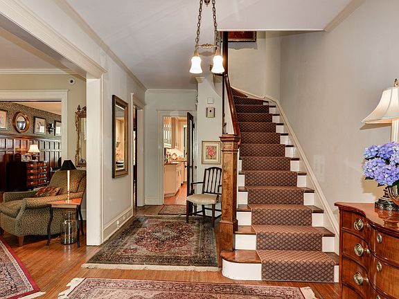 A Mount Pleasant Classic! Exquisitely renovated extra wide Edwardian townhouse filled with colonial revival and arts and crafts detail. Gracious entrance hall with a wide staircase and french doors. Handsome dining room with mahogany paneling leads into a sun room with views of the beautifully manicured backyard. The large master suite boasts a sun room and private en suite bathroom. The finished lower level has a stunning full bathroom, laundry room, and 2 additional storage rooms. The back yard has a lovely rear patio, generous rear garden, and parking.