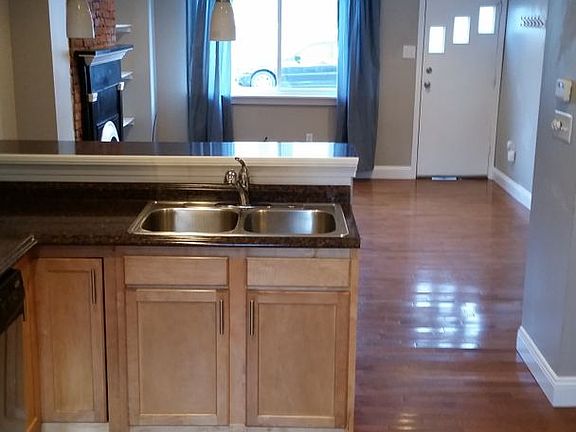 **FIRST HALF MONTH OF RENT IS FREE** The first floor has an open layout with a designer kitchen -- granite counters, tile back splash, stainless steel appliances (including dishwasher) and a bar that seats 3. The house has a large patio, 1 updated, tiled bathroom, central A/C, gas heat, and laundry machines. - 3 Bedrooms / 1 Bathroom - Open Layout -- living room open to the kitchen - Designer kitchen: Stainless steel appliances, granite counters, tile back splash, bar seats 3 - Patio The 3rd bedroom is captive to one of the bedrooms; walk-through the 2nd bedroom to get to the 3rd bedroom.