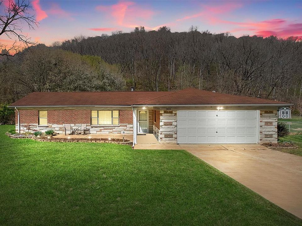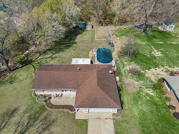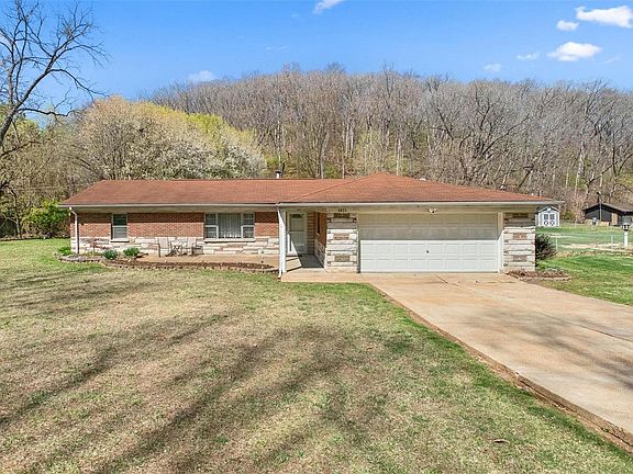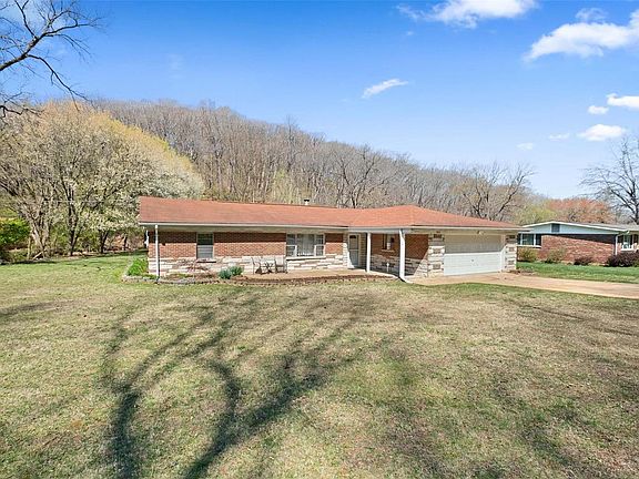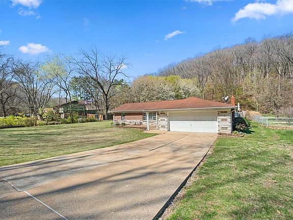 Solid brick ranch nestled on a serene .7-acre, mostly level lot offers a tranquil retreat with serene views & a wooded backdrop. Lovingly maintained over the years, this gem awaits its new owner to infuse their personal touch. Exceptional setting, where the covered back deck unveils sweeping views of the mature, landscaped yard w/inviting garden beds & a well-maintained, above-ground pool. 3 bedrooms including the primary bedroom that overlooks the lovely backyard. Both full baths have been tastefully updated w/newer plumbing, subway tile finishes & stylish fixtures! Entertaining & everyday living converge seamlessly in the main living space, w/a separate living & family room featuring a wall of windows. The main floor laundry & 2-car garage add convenience to your daily routine. Partial basement is great for storage. Quick access to Hwy 21 & 141. No subdivision dues, low taxes & no MSD bill! Additional Rooms: Mud Room