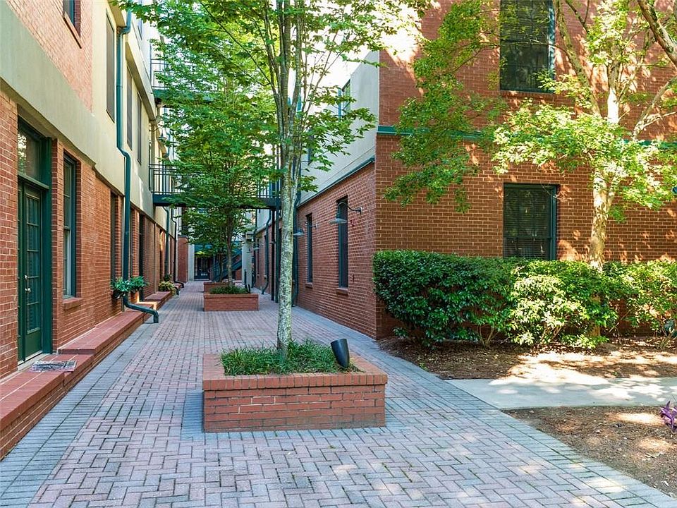 You have to see this Loft to believe it! End unit with wall of windows and view of the pool! This sun filled urban loft has all the charm and room you need in historic Roswell! All hard woods, private bedroom-with doors, large closet and lots of flex space in the open floor plan. Newer HVAC, wired for surround sound, customizable lighting, and soaring industrial ceilings. So much charm walking distance to your favorite eateries in Downtown Roswell. Low HOA Fees and a gated community. Hurry in to to see this urban oasis in the heart of Roswell!