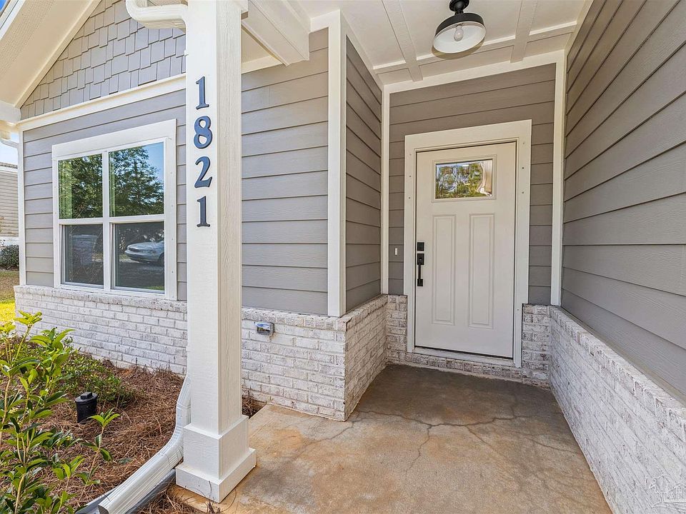 $10k in Seller Incentive for closing cost on this stunning 4/2/2 NEW construction home in Midway/Gulf Breeze. Enter the home through the wide foyer with bedroom #1 to the left. Continue to the living area with high ceilings with ceiling fan & recessed lights overlooking the modern kitchen complete with white shaker style cabinets, soft close doors and drawers, large kitchen quartz island with 3 pendant lights above, stainless steel under counter mount sink, large pantry with light & all Stainless-Steel Whirlpool appliances. Dining area with lots of light, tray ceiling and access to covered back porch. Luxury vinyl plank flooring throughout the whole home including all 4 bedrooms. Large Primary Bedroom with tray ceiling, recessed light, ceiling fan...enter Primary bath through a pocket door for access to tub/shower combo, quartz counter with double sinks, water closet room, and pocket door into the walk-in closet. Additional 2 bedrooms with ceiling fan & double door closets and laundry closet with stylish Barn Door access. Additional features include 9ft ceilings/10ft in tray ceilings, 6" base boards & 1x4 trimmed doorways, fully finished & painted garage with pull down attic stairs, extra wide concrete drive, covered porch with coffered ceiling & ceiling fan, fully sodded and landscaped yard with sprinkler system & well, garage door opener, gutters around entire home, 50 Gallon AO Smith Water Heater & Sentricon Termite System with 1 year bond & 1-year builder warranty. NO HOA & NO Rental restrictions here. Fabric Shield hurricane protection, extra paint, shingles & brick will be in the attic. Great location between Navarre and Pensacola, minutes to the planned New High School and close to a county park.