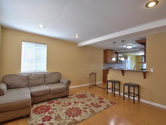 Price Reduced! This functional floor plan has been masterfully designed to optimize every inch of this 3 bedroom 2 bath 896 square foot home.Upon entry notice the cozy living room & resilient laminate flooring,surprisingly large kitchen & beautiful granite counters & ample amounts of cabinet & counter space, casual breakfast bar or a more formal dining area.Every amenity is here!Gas stove, dishwasher, stainless appliances, tankless water heater & indoor laundry closet.Master bdrm has its own en-suite bathroom & is positioned separate from the 2 guest bedrooms offering privacy.2nd full bathroom off of the lvg rm & next to the 2 guest bedrooms.The sliding glass door opens to a freshly painted deck perfect for a barbecue, entertaining or just rest & relaxation.There is also a substantial side yard offering more entertaining or planting options & storage shed.This unique & skillfully designed floor plan allows its square footage to offer every aspect of what is desired for your sanctuary.