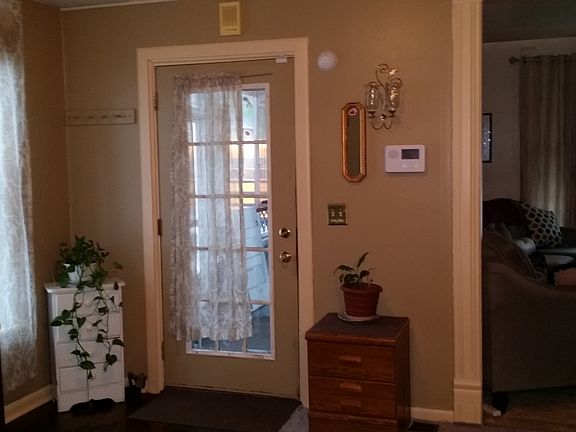 Well cared for home with eat-in kitchen and guest bedroom on first floor. Living room includes a fireplace and mantle. 2 bedrooms and a large master bedroom upstairs along with a large bathroom with built in pantry. Full basement with washer dryer hookups amd half bath with stand up shower. Nice enclosed front porch and nice covered deck in back.