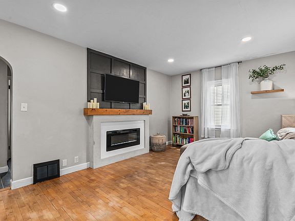 Electric fireplaceNest thermostatWindow dormersArched doorwaysClassic white picket fenceHardwood floorsPrivate backyard