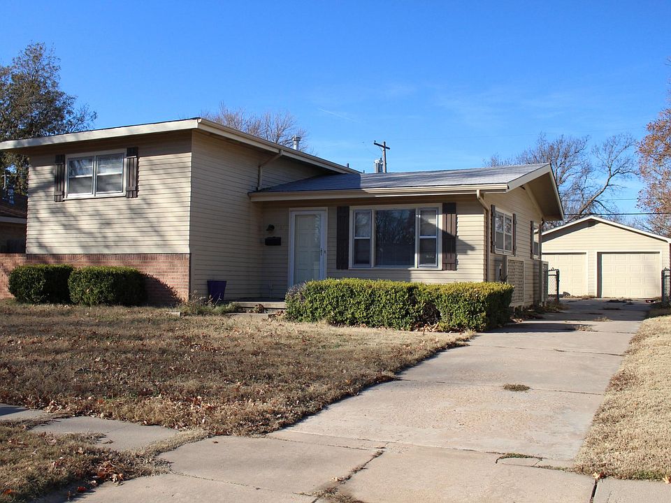 3 Bedroom 2 Bath 2 Car detached garage near 17th and West Street in West Wichita $1250 month with a $900 deposit Exterior of the house will be painted in the next two weeks. Available Now Hardwood floors with carpet in one of the bedrooms and in the downstairs living area Stove, Dishwasher and Refrigerator provided NO PETS - INCLUDING SMALL DOGS AND CATS Call or text Tim for an appointment or for questions We do not accept Section 8 at this time As a friendly reminder we don't allow pets Renter is responsible to pay for all utilities and is responsible for mowing and general cleanliness of the exterior of property. No pets allowed