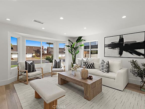 Absolutely gorgeous, soft contemporary. Fully renovated and remodeled featuring the most sought after finishes available. This home was taken down to the studs and includes all new electrical wiring, new electrical panel, new PEX plumbing, new HVAC and ducting. All work is to code and fully permitted with the City of Costa Mesa. As you enter the home you are greeted by the great room open concept design. The kitchen features a massive center island with sleek quartz counters. Opulent marble tile backsplash and floating shelves. The custom-built cabinetry is impressive with flat panel European design including soft close features. Abundant storage including pot and pan drawers. Bosch high end appliances. Two contemporary fireplaces with designer selected tiles flank the kitchen area, one in the family room and one in the living room. Rich white oak LVF flooring flows seamlessly throughout the home. There is a spacious downstairs bedroom which could easily be used as a second primary suite. The main primary upstairs has a generously sized walk-in closet. The primary bath is spa inspired with lux soaking tub and a ample sized walk-in shower with multi jet spray shower heads. Elegant vanity with double sinks and make up area complete the space. Three additional bedrooms upstairs and another beautifully designed bath. The rear grounds of the home offer endless opportunity for relaxing and entertaining. The sparkling pool and spa have just been re plastered and tiled. Plenty of deck area with a sunny Southern facing location perfect for enjoying your free time. This home is conveniently located near Costa Mesa Golf and Country Club. Tanager Park is just around the corner with with more opportunities for recreation. You are going to love this property which is truly custom, turn key, dialed in and ready to go!