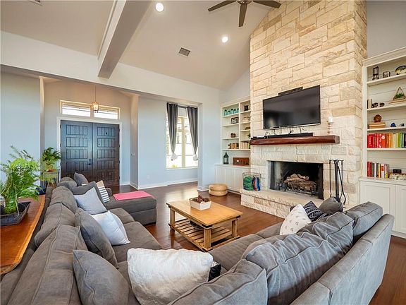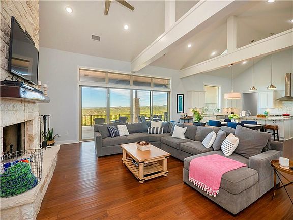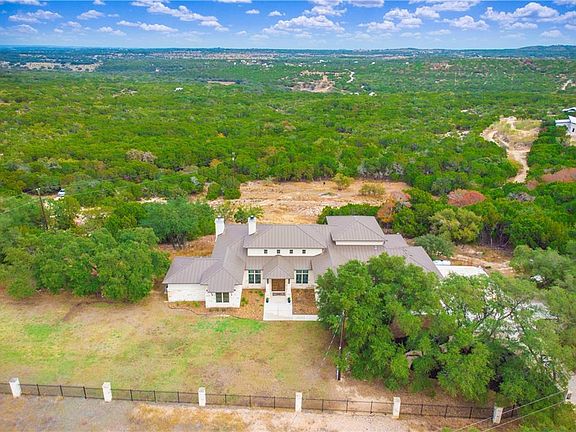You'll love this stunning Modern Hill Country home in a quiet location. This luxurious 5 bedroom, 3 full and 2 half bath, custom built home rests on 10 acres with 180 degrees Hill Country Views. Boasting an array of thoughtful finishes throughout this open floor plan layout. This immaculate 4124 SF home includes bamboo floors, spray foam insulation and LED motion sensor lights. The open living concept allows for ease of entertaining while preparing meals in the gourmet, cook's kitchen. It offers an oversize island with prep sink and storage, soft close drawers, stainless appliances, dual oven, and gas cooktop. Storage under the stairs makes for a large pantry just off the kitchen. A luxurious owner's retreat with jetted tub, dual vanity, and extended shower with dual rain shower heads is the perfect place to unwind. The spacious walk-in closet can also be used as a safe room. Four additional bedrooms and a half bath are on the main level. Upstairs offers a large second living space with half bath. A large covered patio with a fireplace overlooks the rear of the property and is perfect for entertaining with an outdoor kitchen or while sipping on a glass of wine while enjoying the breathtaking sunset view.