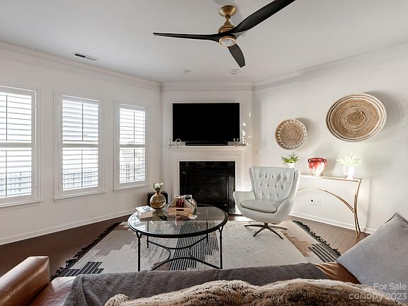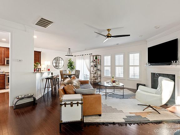 End-unit townhome in popular Park South Station! Bright kitchen features granite counters, gas cooktop, and stainless-steel appliances. Light fixtures recently updated, along with plantation shutters. The breakfast bar overlooks a spacious great room with fireplace and dining area, ideal for entertaining. Main level features double crown molding and a private office for the perfect workspace. Neutral paint and wood flooring in main living areas. Primary bedroom suite with upgraded tray ceiling and features two large closets with shelving systems, walk-in shower, and garden tub. Upstairs flexible loft area easily converted to third bedroom (quote available). Fenced backyard and attached 2-car garage. Gated community includes Olympic size pool, clubhouse, fitness center, & dog park in prime location close to LINX Light Rail, shopping, restaurants, Park Road Park, South Park Mall & an easy commute to Uptown! There is even access in back of the neighborhood to Little Sugar Creek Greenway