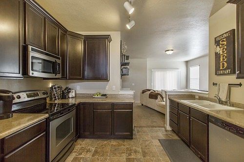 Complete info: http://1821.CanBYours.com - Feels like home when you walk through the door. Spacious open floor plan with so many upgrades. Stunning dark cabinets, ample counter space, stainless appliances, and don't forget the master suite with walk in closet. Plenty of basement storage, plus you can finish it exactly how you want. Beautiful fully landscaped yard with garden. Relax in the shade under the covered Trex deck while enjoying the views of the majestic Wasatch Mountains. Easy freeway access, close to restaurants and shopping. No need to build when this home feels brand new.