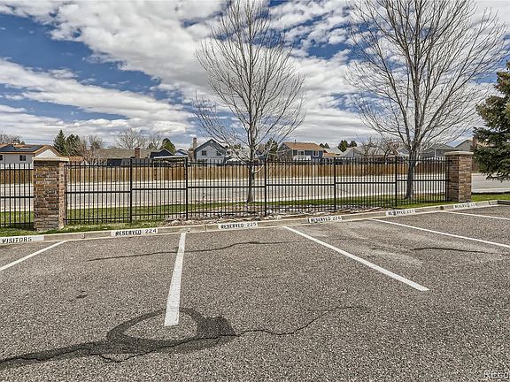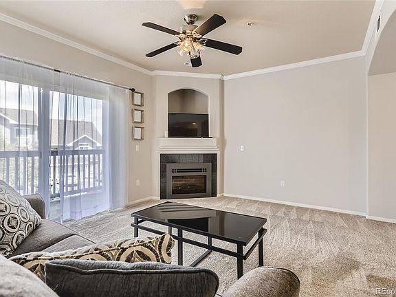 Welcome home to the highly desired Brookhaven Condominiums Complex! Pride of ownership reflects in this very well cared for unit. Step inside and take in the open floor plan with 9' ceilings and archways. The living room has a cozy gas fireplace with a niche, ceiling fan light, recessed lights and beautiful crown molding. Through the sliding glass door enjoy the patio with additional storage space. The dining room is the perfect size with a large inset. The kitchen has 42" raised oak panel cabinets with a pantry; granite tile counters and black appliances. The primary bedroom is spacious featuring a ceiling fan light, a large window with natural lighting, a walk-in closet and an ensuite full-sized bathroom with a guest door. There is a full-size laundry closet with a shelf. Additional Amenities: Automatic fire sprinkler system in unit, reserved parking space, club house, fitness facility with an outdoor pool. Side Creek Park is across the street. Convenient access to E470, I70, Buckley Space Force Base, Southlands Mall, Town Center of Aurora, Restaurants and so much more!