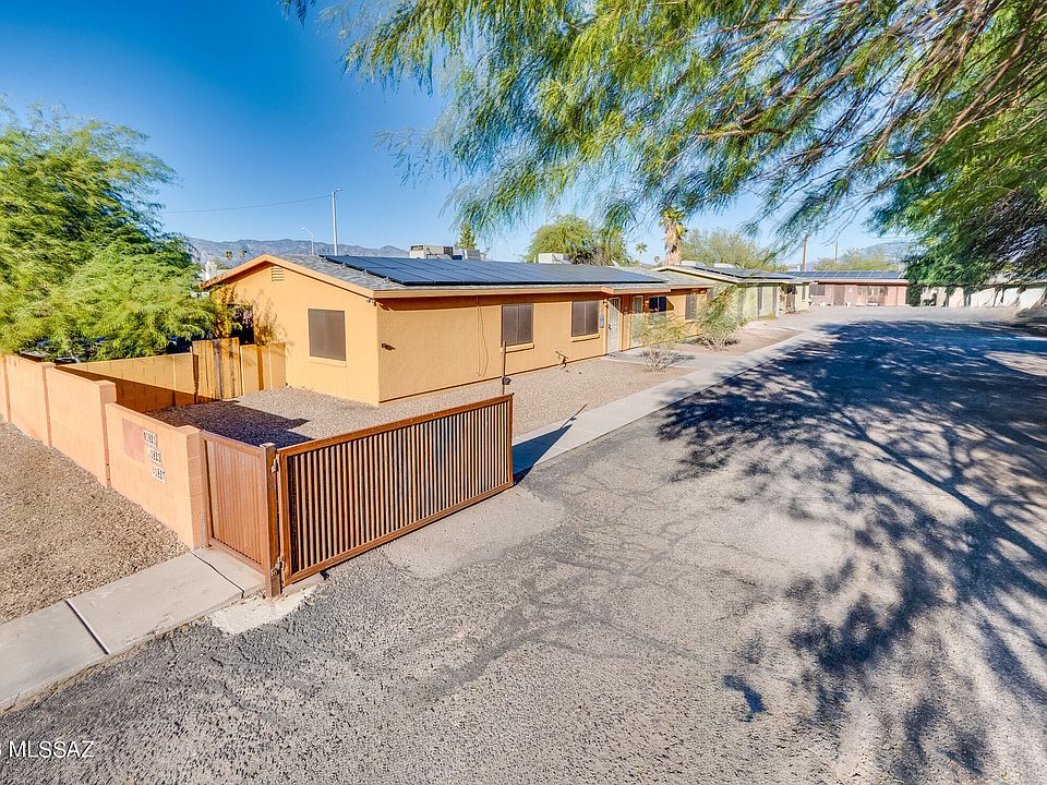 Jefferson Village is a comfortable and distinct residential community nestled in the heart of Tucson, meticulously crafted units with a focus on enhancing the quality of life and providing an abundance of privacy. Built in 2001, this community comprises five duplexes and two single-family homes. This particular 4plex (2 duplexes) are two of the five thoughtfully designed duplexes within Jefferson Village, featuring an open floor plan and quality built construction. The residences consists of two units: a 3-bedroom, 1-bathroom space and a 2-bedroom, 1-bathroom abode. The seamless integration of open kitchens with a great room concept offers an inviting space for daily living. Each unit boasts its own private laundry room/closet, providing convenience and efficiency for daily chores. Each unit has their own backyard and the entire complex is equipped with with high producing solar. Jefferson Village offers a rare opportunity for an investor to add a significant property to their investment portfolio. Purchase all five duplexes and two single family homes or buy them individually.