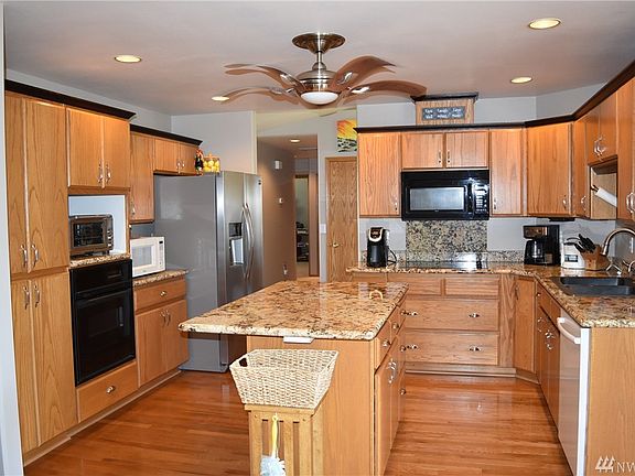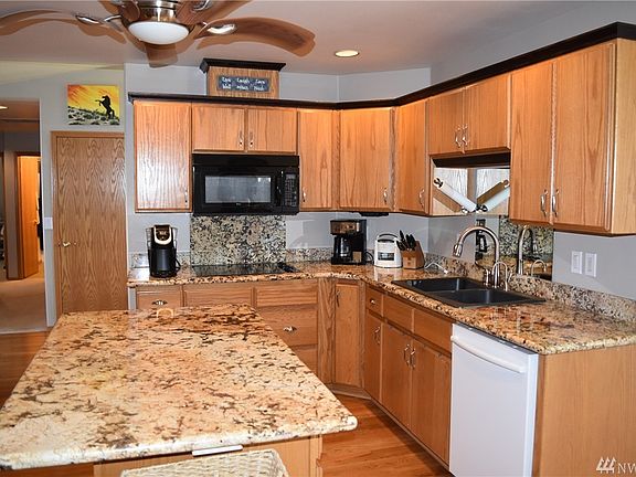 Custom Rambler situated on a manicured fully fenced yard with mountain views. Chef's kitchen with center island and granite countertops. RV/Boat parking on side of home. Family room off kitchen with hardwood floors and slider to patio. Living room with vaulted ceilings and lots of windows for natural light. Extra wide hallways and wheelchair accessible.