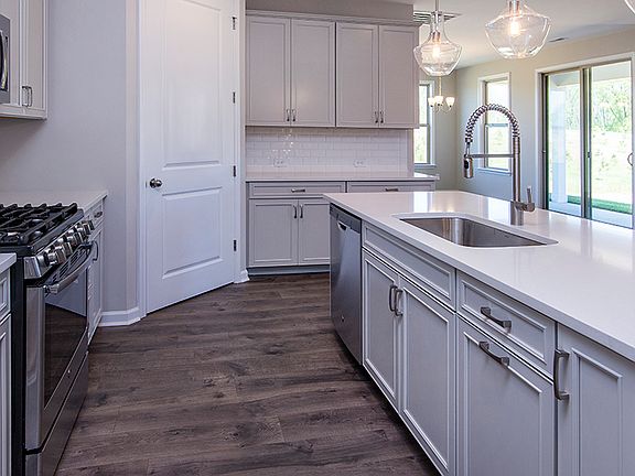 Enter this welcoming ranch style home to a heavily molded foyer and 8' interior doors. Open kitchen with plenty of counter space featuring taupe cabinets, white-ice granite, stainless 30' gas range, island and crisp white subway tile backsplash. Kitchen and breakfast opens to the family room which features tons of natural light. Large breakfast seats 8 comfortably and walks out to a covered porch great for year round entertaining. The owners suite features a tray ceiling and large walk in closet. Upstairs features a bonus room, bedroom, full bathroom and unfinished storage.