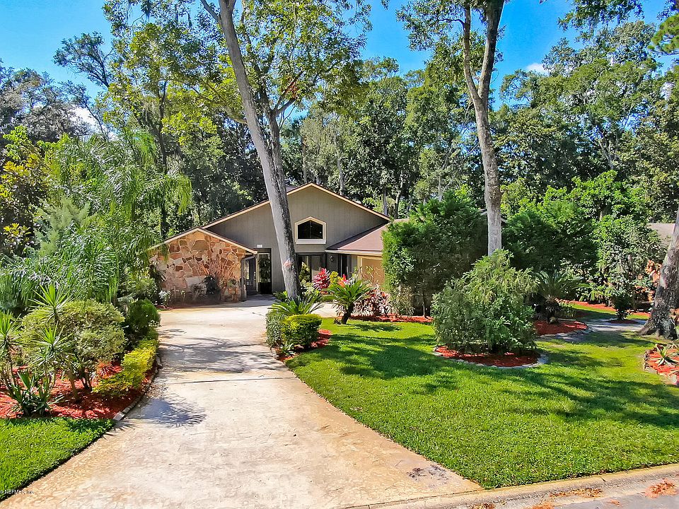 Great location in Neptune Beach! Come to Twelve Oaks Lane and find your oasis surrounded by lush tropical landscape. Enter to find high ceilings and 20 inch porcelain tile floors. Enjoy entertaining in your formal dining room that opens to the courtyard. The Great room features a stone fireplace, vaulted ceilings and skylights. The kitchen boasts beautiful granite countertops, ivory cabinetry and a breakfast room that opens to the courtyard. A split bedroom plan allows for a private Owners Suite with a large bathroom with a jetted garden tub, vessel sinks and walk-in shower. Relax and take in the view of the back yard nature from your Florida room. Hurricane shutters and a new wind rated garage door provide peace of mind. New roof -2017 and new A/C 2019. Come live the beach lifestyle!