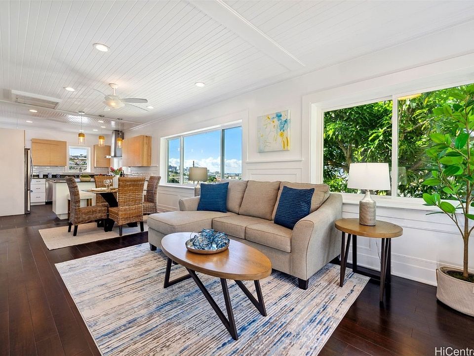NEW LISTING! Gorgeous 3-bed, 1.5-bath home with sweeping views of the harbor, city, mountains. Perched above Honolulu on a private driveway, this residence blends modern upgrades while retaining its classic 1930s kamaaina charm. New 11-panel PV system with Tesla battery installed in 2023 for $38,000. The heart of this mostly single-level home is its open-concept layout with beautiful dark bamboo flooring, split AC, freshly painted interior, elegant moldings and newer windows that frame the stunning vistas. Classic design elements include high ceilings and a rare ofuro soaking tub next to a relaxing rainfall shower. Updated kitchen includes stainless appliances, custom cabinetry, granite countertops. Roof upgraded in 2015. Enjoy the lush outdoor sanctuary with a fully-fenced yard with a gazebo - perfect for entertaining or unwinding with a book or glass of wine. Several fruit trees including avocado, yuzu, orange, lime, starfruit and a garden planter box. 2-car garage plus a large unfinished basement that can be used as workshop or storage. Centrally located near downtown, supermarkets, freeways, restaurants and Kamehameha Schools. One of the best values in town at under $1 million!