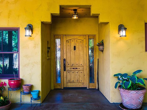 Enjoy Beauty and Comfort in this Southwestern Adobe Straw Bale home! The uniqueness of this home will take your breath away when you walk through the front door. Strawbale walls can provide greatly improved comfort and dramatic energy savings (note the library was an addition and that is the only part of the home that is not straw bale construction). Many features of this home include Radiant floor heat, whole house sound, on-demand water heater, generator, open beam ceilings, and many more features. The library could easily be turned into a 3rd bedroom if needed. The large entertaining kitchen has a wolf gourmet range, old-world fixtures, island with butcher block, 2 sinks, amazing views, and large counter space. The screened-in porch is perfect for entertaining, afternoon naps, and watching amazing sunsets. It features ceiling fans and pulls down shades and recessed lighting. With over 5 acres this property provides privacy, a garden area with grapes, and a small patio for afternoon sun.