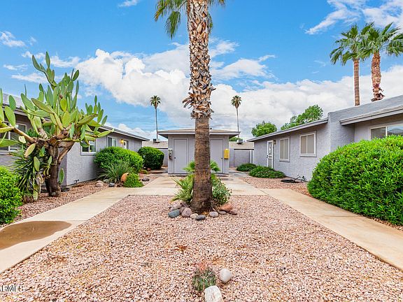 Beautifully-maintained 2-bed, 1-bath condo in the Paradise Valley School district, 10 minutes away from Desert Ridge. The property is part of a 4-unit complex with an enclosed courtyard. Kitchen has renovated cabinets/back splash, an R/O system, and new appliances. Abundant storage, incl. huge pantry and linen closets and locked outdoor storage. 2 separate patios, accessible from each bedroom - one paved and the second landscaped with 3 citrus trees (orange/lemon/lime) and space for add'l plantings. Two security doors are great to keep open in cooler months. On-property washer/dryer is steps from front door. 2 assigned, lit parking spaces. $150 HOA incl. community laundry, water/trash, landscaping, and a studs out insurance policy. Fantastic price point for this area! Rentals welcome.
