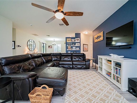 HOUSE BEAUTIFUL! This one owner home is absolutely immaculate. 3 Bedrooms + Den, 2 Bathrooms with a Fenced Yard. No Carpet Here! You will love this split bedroom floor plan that features tons of natural lighting and brand new waterproof vinyl flooring in the main areas. The kitchen features staggered wood cabinets, a farmhouse sink, pantry and recessed lighting. The dining area has upgraded lighting with entry to the screened lanai for entertaining. The master has custom closets, sliders to the lanai, trey ceiling with crown molding and an en suite with barn door entry. The inside laundry has been customized with cabinetry, a hanging and folding area, and the washer and dryer convey! Large living room that has been wired for a wall tv. ( bracket will convey ) The additional two bedrooms have custom closets as well. Den with trey ceiling and crown molding. The large backyard is great for entertaining. It has a large, poured concrete pad that can be used for a patio, shed or even volleyball or basketball, should you choose. Fenced yard for your convenience. Make an appointment today, this won't last!