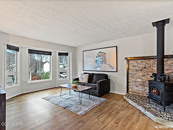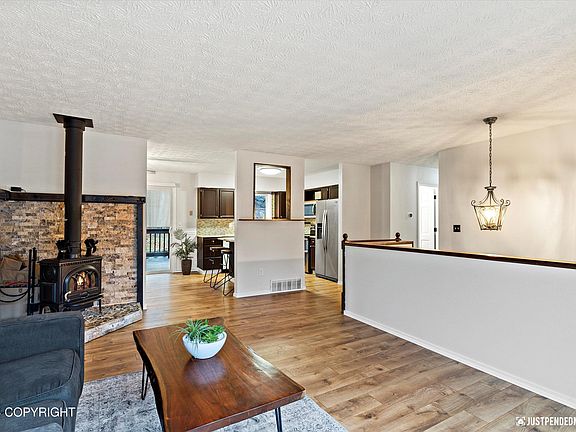 Featuring an updated kitchen, new windows, and an on-demand hot water heater. Enjoy outdoor living on the two-tier BBQ deck, perfect for entertaining. With a fenced backyard, terraced flower beds, and mountain views, it's a peaceful retreat. Recent updates include new carpet/wood laminate flooring. Conveniently located near trails and Glenn Hwy, this family-friendly neighborhood.