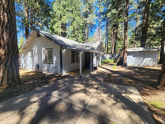 Come find your peace of mind on this serene 1.16 acre complete property. Everything you need is here, starting with the well-appointed 960sf 2 bed/2bath home tucked away in the tall pine and cedar trees. The kitchen shines with granite-tile counters, stainless steel microwave w/range & slate tile floors that transition into durable wood-textured tile flooring through the lvg room & hallways. The primary bedroom features an en-suite bathroom & two walk-in closets. One of the walk-ins conveniently houses the washer/dryer. The second bed&bath are located on the opposite side of the home. Outside you will find even more amenities-3 RV hook-ups electric(2 with water) & 1 dump station, tall-fenced garden with greenhouse, gated entrance, secured covered carport & shed for storage, rock-lined drive-way, bordered flowerbeds throughout, plenty of parking, and even more room to grow & develop! All completely enclosed by tall fencing. Call for your tour today!