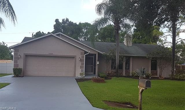 You will love this urban inspired 3 bedroom, 2 bath home located in San Carlos Park. Notice the custom finished painted flooring, industrial style lighting and ceiling fans fixtures, the newly renovated tiled showers and more. Enjoy gatherings in the generously sized great room with wood burning fireplace, family dining and modern kitchen with stainless appliances, glass tiled backsplash, and French doors leading out to the oversized, enclosed lanai area.These are just some of the things done on this home: Complete Polyurethane plumbing installed June, 2017, A/C 5 years old, Water Osmosis System installed December 2016, Septic Pumped November 2016, Both bathroom showers upgraded in 2016, pull down Aluminum attic stairs, OVERSIZED GARAGE, fenced backyard, French doors leading onto lanai, fresh paint throughout as well as freshly painted driveway, keyless entry,brackets in place for flat screens and more. Split bedrooms floor plan offering privacy to the Master Bedroom - Big closets! This home is ready for new owners!