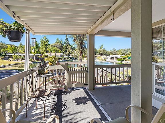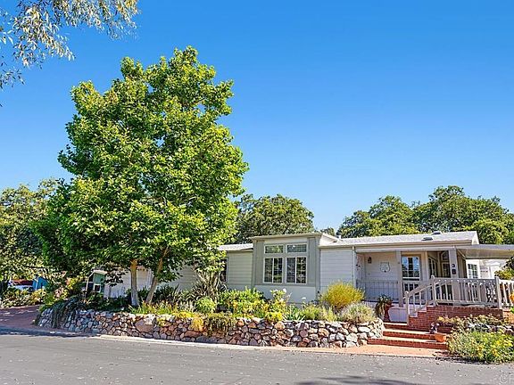 2003 MANUFACTURED HOME, SILVERCREST, WITH A LARGE GARAGE AND AN AMAZING BACK YARD WITH POND AND WATERFALL - Offered for $395,000!! 3 Bedrooms, 2 Baths absolutely beautiful home. Square footage is estimated at 1860. This home has 3 large Bedrooms, a Chef style kitchen, a woodburning fireplace, 2-bedroom walk-in closets with full length mirrors inside the closet doors, a large master bath, and a wonderful back yard that includes a koi pond with waterfall, a bar, dining with a fireplace, seating under a lovely California Live Oak Tree, a game room and an office. This home is located in beautiful Skyline Ranch Country Club, a premier Senior Park that sits in the foothills of Valley Center. FREE golf to all residents, full clubhouse use, gym, gated community and much more. Skyline Ranch is a land leased park; the monthly space rent here is 955.17. Please come and see this wonderful home located in a great Senior Park with many amenities. This home will not last on the market, come and see it today!!