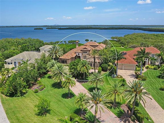 The Crown Jewel of Snead Island! Sophistication and relaxed elegance. This stunning bayfront home is located behind the private gates of Amberwynd. The one acre lot offers unmatched privacy and unbelievable views of Tampa Bay and the Sunshine Skyway bridge. This custom John Cannon pool home features 4 bedrooms, 5 bathrooms,a bonus room,a separate office, and a 3 car garage. Absolutely amazing amount of upgrades in this spectacular property. Custom Italian Terracotta floors, gourmet kitchen with Dacor appliances, butlers pantry, wine cellar, crown molding, and so much more. The master suite is truly magnificent. Huge bedroom with large sitting area with french doors leading to the pool and spa. His and her walk in closets with custom shelving and a dressing area. Master bath features his and her vanities, exquisite fixtures and claw foot bathtub. The large walk in shower has dual shower heads and ample natural light from the atrium setting. Multiple covered balconies and outdoor living spaces overlooking the pool and bay are ideal for a romantic sunset or grand entertaining. Lushly manicured lawn with mature landscaping only enhances the privacy of this lot. You simply will not find a nicer home for this price! Located on one of the undiscovered treasures of the West Coast of Florida--Snead Island. Whether you enjoy dining or boating at the local Yacht Club, biking all of trails of Emerson State Park,or boarding your horses at the local stable,Snead Island truly has something for everyone.