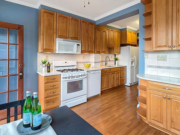 Step into a charming piece of history with this beautifully maintained townhouse nestled in highly desirable Bay Street. Spanning over 2,000 square feet, this residence offers a perfect blend of classic elegance and modern convenience, ideal for those seeking a vibrant urban lifestyle. The heart of the home features an inviting open floor plan, seamlessly connecting the kitchen, dining, and living areas. The eat-in kitchen is a culinary delight, equipped with a built-in microwave, dishwasher, and ample storage, making meal prep a breeze. With three bedrooms and a large hallway bathroom, this home provides plenty of room for relaxation and privacy. The generous walk-in closet ensures ample storage for your wardrobe. Cozy up by the fireplace in the basement living area, perfect for creating lasting memories on chilly evenings. The convenience of a second kitchen and second bathroom in the basement opens up endless possibilities, whether for entertaining or as a private retreat for guests. The laundry area, also located in the basement, adds to the home's functionality. Outside, enjoy the benefits of a detached oversized garage, providing additional storage and parking. The low-maintenance lot allows you to spend more time enjoying the vibrant community around you.