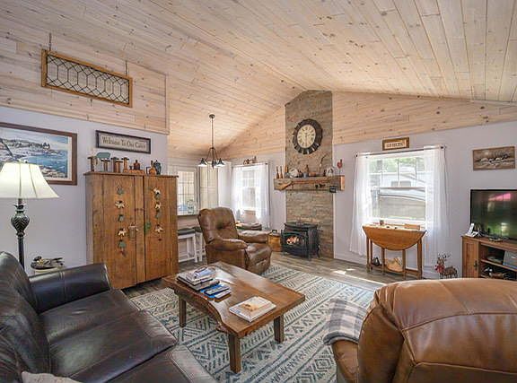 SMALL BUT MIGHTY LOCATED IN THE QUAINT VILLAGE OF TOPINABEE This adorable home has been completely renovated and move-in ready The entire roof removed and replaced with new trusses for a 6/12 pitch with added gutters. All new siding, Pella windows, insulation, new forced air furnace, A/C, stainless appliances, stackable washer/dryer, new vinyl plank flooring, vaulted ceiling, LED lights throughout, new tiled shower, vanity and fixtures. Enjoy the spacious outdoor living space with a fenced yard plus a poured patio. Plenty of storage with a 2.5 stall garage. Mullett Lake just a short walk away along with the Rails to Trails, community park and public boat launch.