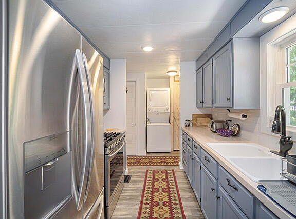 - Interior Features: Smoke Detector, Vaulted Ceilings, Wood Laminate, Freestanding Gas Stv, Stacked Washer/Dryer