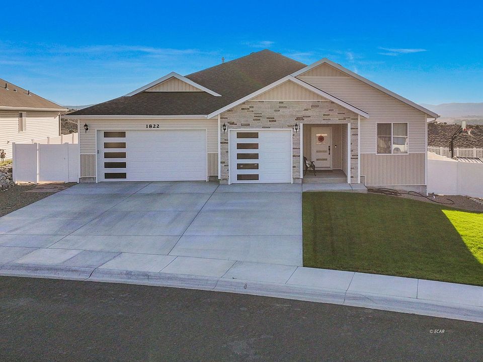 Welcome to this like-new, meticulously maintained home offering a spacious layout and modern features throughout. Built in 2022 and situated on a generous 0.70-acre lot, this home features an open floor plan. Ideal for entertaining, with plenty of natural light throughout the home. An oversized kitchen island, perfect for family gatherings with granite countertops, electric cooktop & double oven, a chef's dream kitchen, ready for all your cooking adventures. Ensuite features a separate tile shower and tub with double sinks and walk in closet. Enjoy breathtaking sunsets from your backyard, with plenty of outdoor space for relaxation. Located in one of the newer, sought-after subdivisions in Elko.