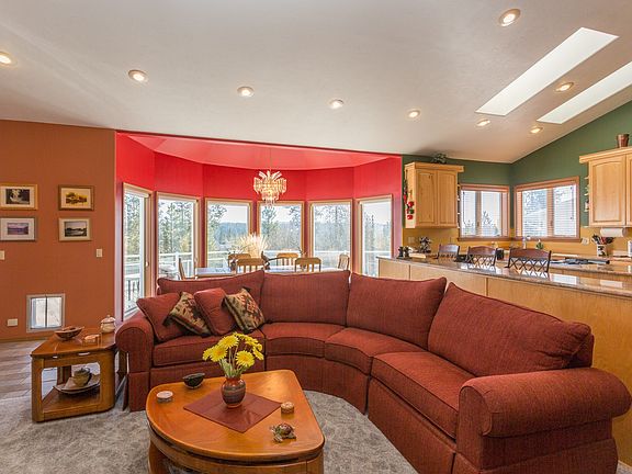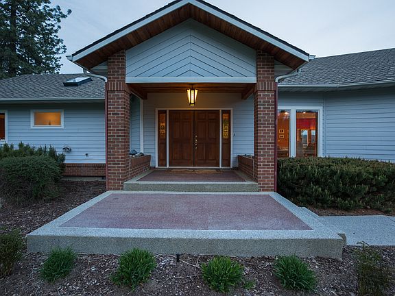 5463 Sq. Ft. Custom in Colbert's Half Moon Lake Estates gated community. 5 treed acres manicured for fire resistance & to attract wildlife. 4+ bed/2.5 bath features cathedral ceilings, double fireplace, granite kitchen counters & hickory cabinets, main floor living w/master, laundry & wide halls, rec room w/wet bar. Tons of shelving throughout. Workout room with dry sauna. Central Vac. View of Mt. Spokane from large deck with fire pit & hot tub. 18x43 RV shop, wood shop and tons of storage. Paved driveway.