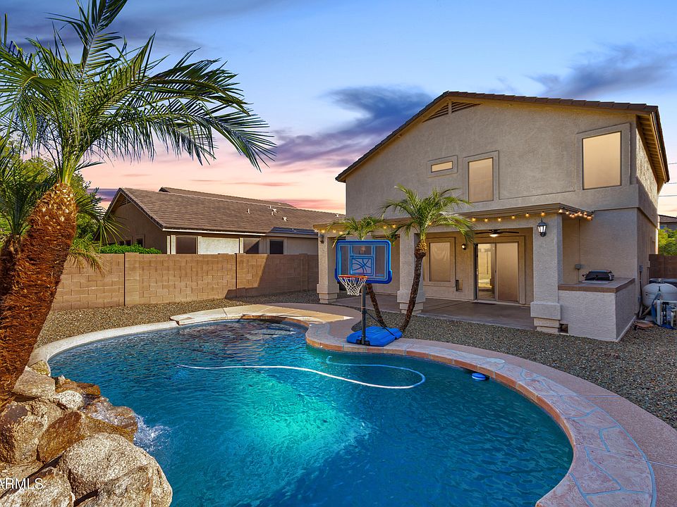 Move-in ready and beautifully upgraded! This home features a new roof, new AC, just-installed carpet, a remodeled kitchen with modern finishes, and remodeled bathrooms throughout. The bright, open layout creates a natural flow from the kitchen to the family room, making everyday living effortless. Upstairs offers a spacious loft and a private primary suite with refreshed touches. Step outside to a sparkling pool with a soothing water feature, set against a natural desert ridgeline for a peaceful backdrop. Located in a quiet, well-kept neighborhood with easy access to nearby hiking trails and outdoor recreation. Minutes from the Loop 101 and Desert Ridge for premier shopping, dining, and fast commuting. Homes this dialed-in move quickly—don't miss it.