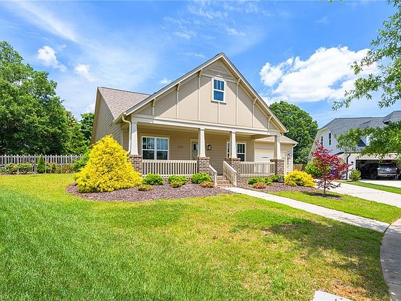 Spacious one-level home in the highly sought after Traditional Neighborhood Development of Welden Village in the heart of the Triad. Convenient access to I40, shopping, restaurants and schools. This beautiful open concept home has plenty of natural light and space for get togethers or quiet evenings in front of the gas fireplace. The kitchen provides generous granite counter space and a huge island, ss appliances, including a new dishwasher and oven/range. The spacious primary bedroom offers a sizable walk-in closet and a bathroom w/ a granite double vanity, walk-in shower and large closet. The 2nd and 3rd bedrooms share the roomy second full bath. The front bdrm can be enjoyed as a lovely office with ample natural light. Enjoy time on the covered front porch or screened in back porch overlooking the tree lined fenced in backyard. Refresh in the neighborhood pool, relax in the hammock park, have fun at the park or get your steps in on the walking trails. This neighborhood has it all!