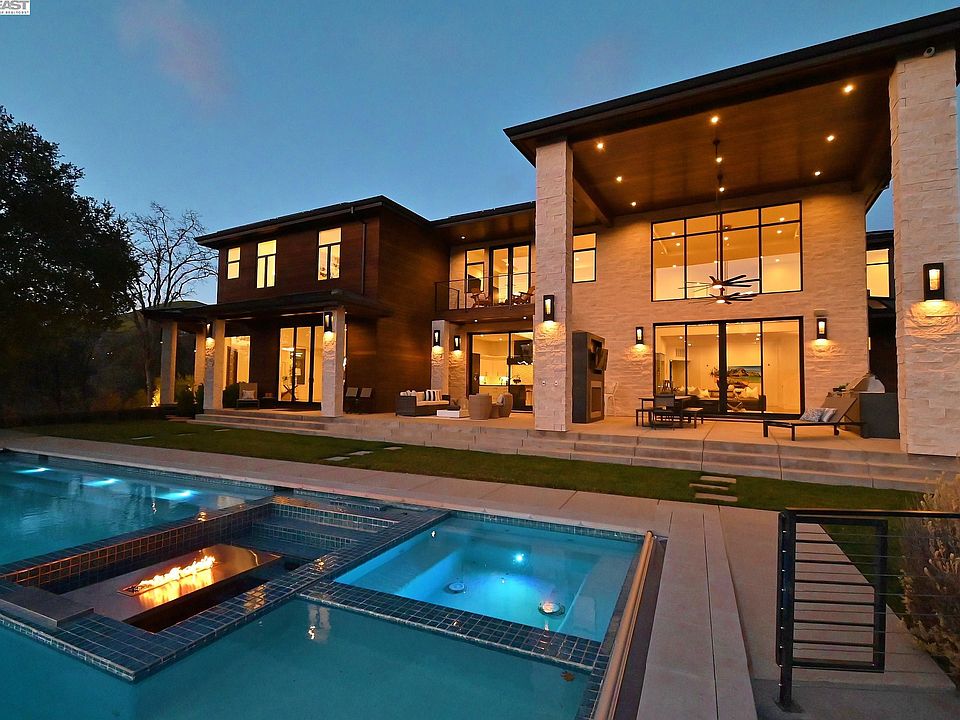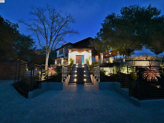 Sensational architectural masterpiece in coveted Diablo. Within a few blocks of the Country Club. Brand new construction from the ground up in 2018 including owned rooftop home solar system. Only one owner has taken meticulous care of this incredible property. Imagine breathtaking views of the sunsets and sunrises over the mountains from all venues of the home. With the touch of a button, open floor to ceiling walls of glass leading to an inviting infinity edge pool, spa, fire pit in the pool, outdoor kitchen. Soaring ceilings, dramatic entry with lit permanent stone art to amaze all. Privacy abounds behind an electronically controlled gate with extra visitor parking and a spacious 4-car garage with contemporary garage doors, EV outlet. Real hardwood floors. “Smart home” controlled by your phone. Amazing sound system. A chef’s kitchen in a magnificent great room featuring an 87-inch gas, 6 burner, Lacanche range, glass temperature-controlled wine room, Miele appliances, 4 ovens, 3 dishwashers, 2 laundry rooms, attached ADU with private entry, full kitchen. 3 bedrooms with private covered lighted view balconies. All bedrooms with walk-in closets. Primary suite w/ 2 full baths, steam shower & 2 walk-in closets & balcony. Large level grass area. Outdoor shower. 4 fireplaces.