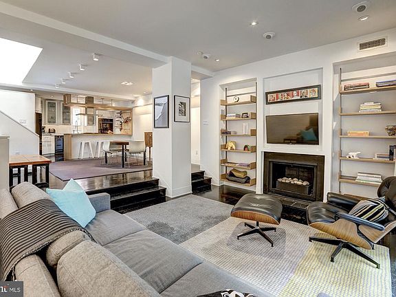 This sleek, modern design home features 2 bedrooms & 2 bathrooms. The prime location is a walk score 98 and offers easy access to Metro, Dupont Circle, Adams Morgan and U Street. The main level opens to a large living room with gas fireplace - perfect for entertaining. The room features built-ins, sound proof/energy efficient sliding doors that lead to a balcony and back patio with gas grill. The open concept kitchen and dining room are filled with natural light from the large skylight. The kitchen includes a butcher block breakfast bar, brushed stainless steel counter tops, sleek cabinetry, custom pantry and office nook. The master bedroom features an abundance of closet space, and ensuite luxury bath with jetted tub, heated floors, towel warmer, skylight and linen closet - your own private spa! The second bedroom includes a generous amount of storage space. The second bathroom has a full sized washer & dryer. Rent includes water and two off-street parking spaces.